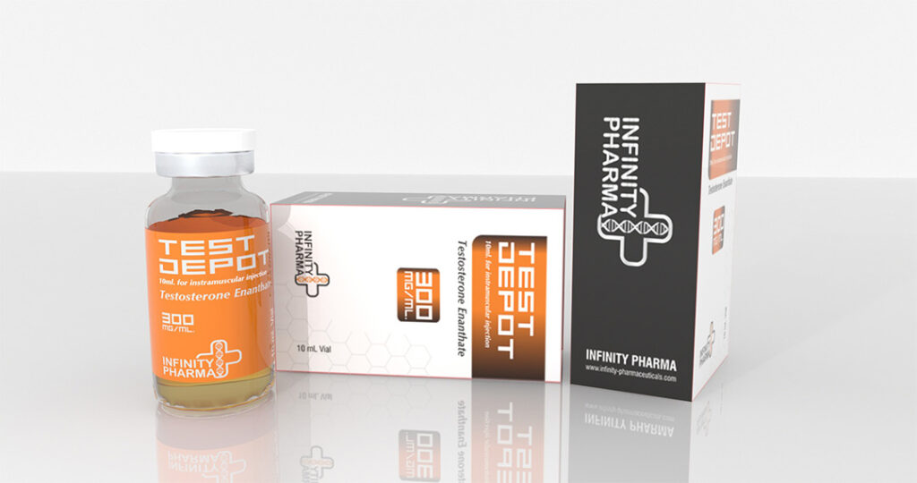TEST DEPOT is an oil based solution of testosterone enanthate for IM injection designed to release testosterone slowly from the injection site. Testosterone serum concentrations remain elevated for 5 – 8 days after IM administration. TEST DEPOT has both anabolic and androgenic effects. Testosterone supplementation has been demonstrated to increase strength and growth of new muscle tissue, frequently with increases in libido.