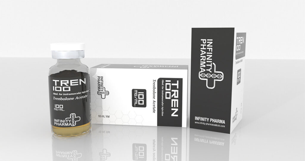 TREN 100 is an oil-based solution of trenbolone acetate for IM injection. Trenbolone is an anabolic steroid with significant anabolic and androgenic effects. The fast-acting ester produces a rapid increase in serum trenbolone levels which remain elevated for 3-4 days thereafter. Trenbolone promotes significant increases in strength, muscle anabolism, appetite, and aggression, and has been demonstrated to reduce body fat.