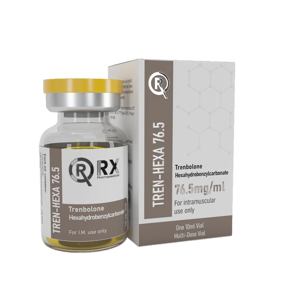 TREN-HEXA 76.5, Trenbolone Hexahydrobenzylcarbonate, often referred to by its brand name Parabolan, is a potent anabolic steroid known for its significant effectiveness in muscle mass gain and fat loss. With an ester chain attached, making it a long-acting version of Trenbolone, it has a concentration of 76.5 mg per milliliter. This formulation extends the duration of its action, allowing for less frequent injections compared to other forms of Trenbolone, such as Trenbolone Acetate. It is primarily used in the bodybuilding community and by athletes to enhance physical performance and appearance.